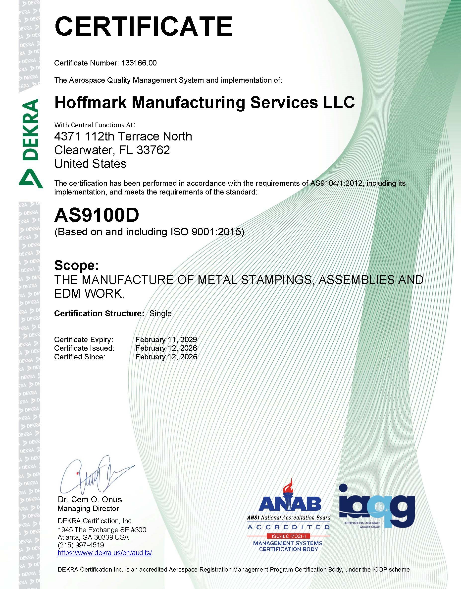 Mark Doetsch has over 40 years’ experience in the Automotive, Metal Processing, Industrial Filtration business and Quality. Mark has brought in his proven management team from Michigan, to upgrade the plant and equipment to increase capability and output. We have doubled our sales in the last (2) years and are growing. We are certified toAS9100, in compliance with the standards established by the aerospace industry. ClickHEREto view our SUPPLIER QUALITY ASSURANCE REQUIREMENTS (SQAR). ClickHEREto view our Quality Policy.Greg Hoffstetter brings 25 years of experience to the table in Sales and Marketing. Greg also has a strong background in tooling which is very helpful in our business model. Greg has an in-depth knowledge of the small Aerospace stamped components which is part of our growth strategy.